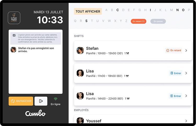 Suivez vos ratios de masse salariale et taux de productivité grâce à l’intégration Combo et Lightspeed. Combo accompagne plus de 10 000 commerces en France sur leur gestion d’équipe, des plannings à la prépa-paie. Créez vos plannings, suivez les heures réelles (pointeuse en option), centralisez tous vos documents RH pour gagner en efficacité et améliorez la communication avec vos équipes.