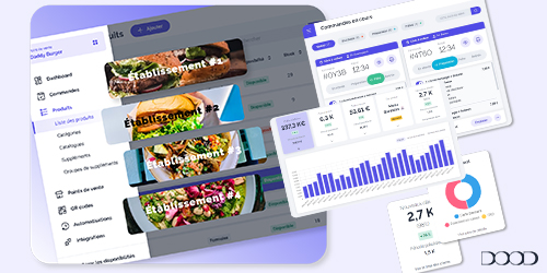 - Une solution de marketplace avec commande en panier commun dédiée aux food courts, halles gourmandes et dark kitchen.