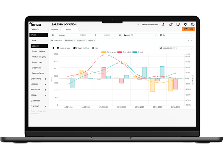 Utilisez Tenzo avec Lightspeed pour étendre la portée de la suite de reporting Lightspeed pour gagner encore plus de temps et d’argent. Les données de ventes se combinent de manière automatique avec les données de vos autres systèmes vous permettant de prévoir vos ventes pour chaque heure de la journée et pour chaque produit.