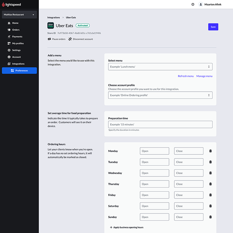 Vous utilisez déjà Uber Eats ? Connectez votre compte pour recevoir des commandes directement dans votre point de vente Lightspeed.